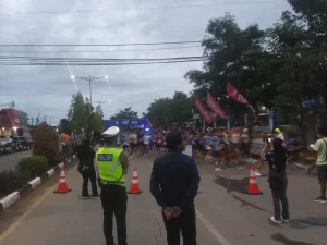TANJUNG SELOR — Kapolsek Tanjung Palas Utara AKP Marsono menghadiri sekaligus memimpin pengamanan kegiatan pembukaan open turnamen sepak bola dalam rangka memperingati HUT ke-42 Desa