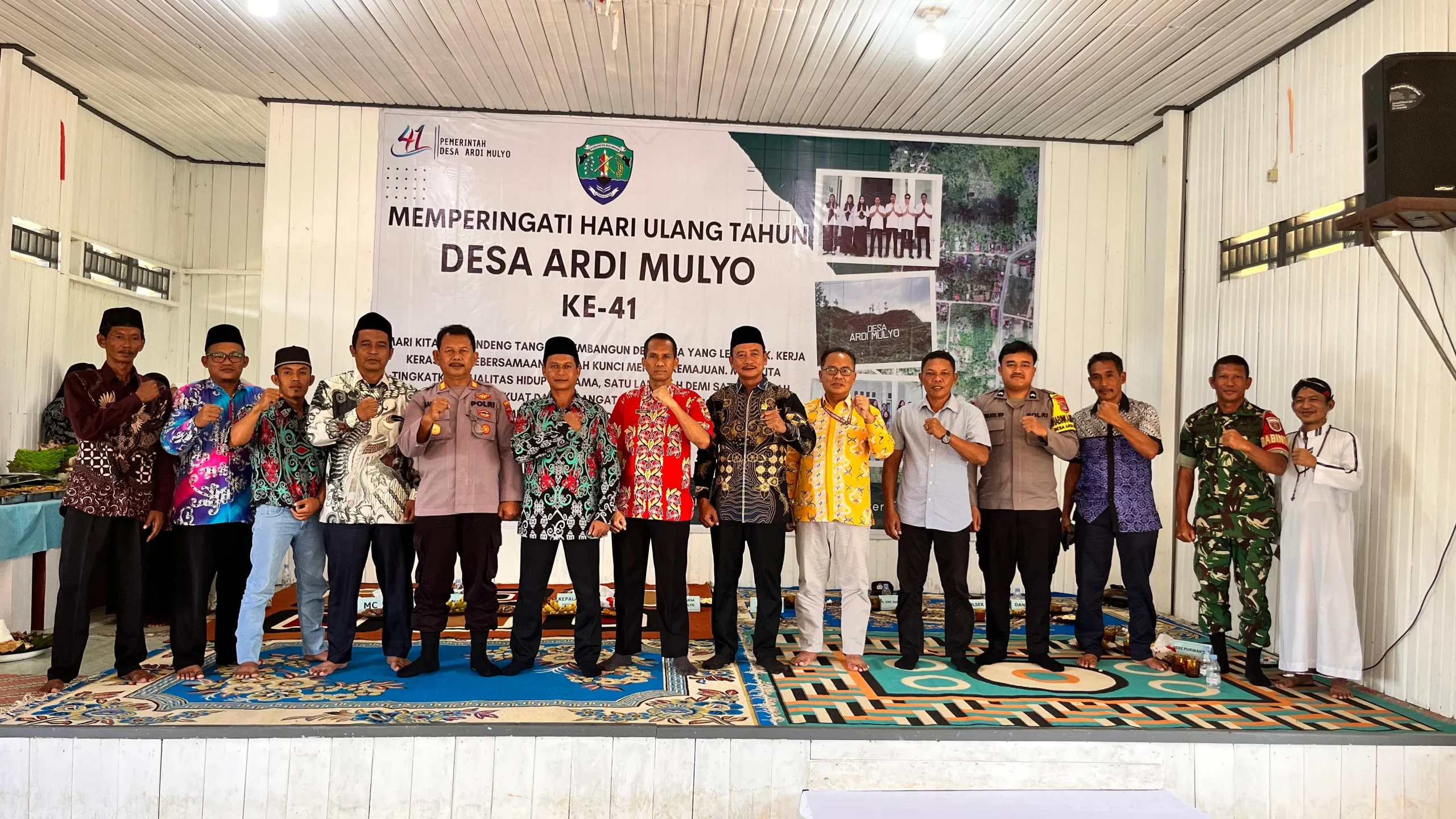 Selain itu, ia mengapresiasi perjalanan panjang Desa Ardi Mulyo yang telah mencapai usia 41 tahun. Menurutnya, capaian tersebut tidak lepas dari kontribusi para tokoh masyarakat, tokoh agama, dan seluruh elemen warga.“Kita patut bersyukur atas perjalanan desa ini. Semoga ke depan semakin banyak prestasi dan kemajuan yang bisa diraih,” ungkapnya.