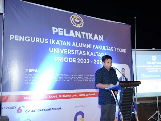 penakaltara.id, TANJUNG SELOR – Momen pelantikan Pengurus Ikatan Alumni Fakultas Teknik Universitas Kaltara periode 2023 – 2027 pada, Kamis (11/1/2024) malam. Tampak begitu sepesial. Ya, ini dikarenakan hadirnya Rektor Universitas Kaltara Dr. Didi Ardiansyah, M.M bersama Ketua LPM dan lainnya.