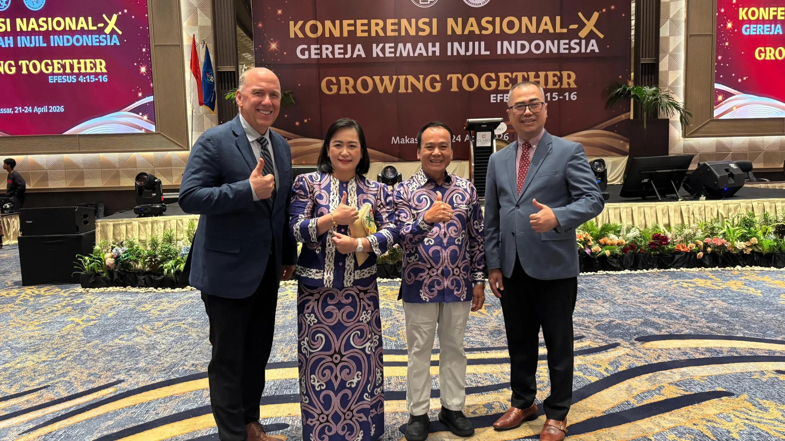 MAKASSAR — Wakil Bupati Bulungan, Kilat, A.Md, bersama istri dan rombongan pendeta menghadiri secara langsung Konferensi Nasional X Gereja Kemah Injil Indonesia (GKII) yang digelar di Hotel Claro, Makassar, Sulawesi Selatan, Selasa (21/4/2026). Kegiatan berskala nasional tersebut berlangsung selama empat hari, mulai 21 hingga 24 April 2026, dengan mengusung tema “Tumbuh Bersama”.