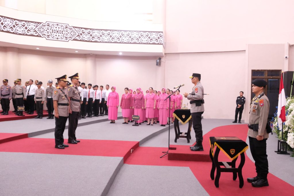 Prosesi sertijab ditandai dengan pengambilan sumpah jabatan oleh Kapolda Kaltara, dilanjutkan dengan penandatanganan berita acara serah terima jabatan sebagai bentuk legalitas dan komitmen dalam pelaksanaan tugas.
