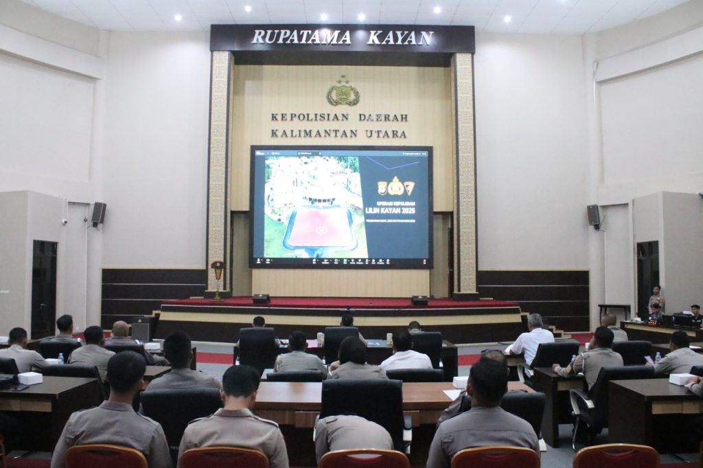 TANJUNG SELOR – Polda Kalimantan Utara menggelar Latihan Pra Operasi (Latpraops) Lilin Kayan 2025 dalam rangka pengamanan perayaan Natal 2025 dan Tahun Baru 2026. Kegiatan ini berlangsung di ruang Rupatama Bhara Daksa Polda Kaltara, Rabu (17/12/2025).