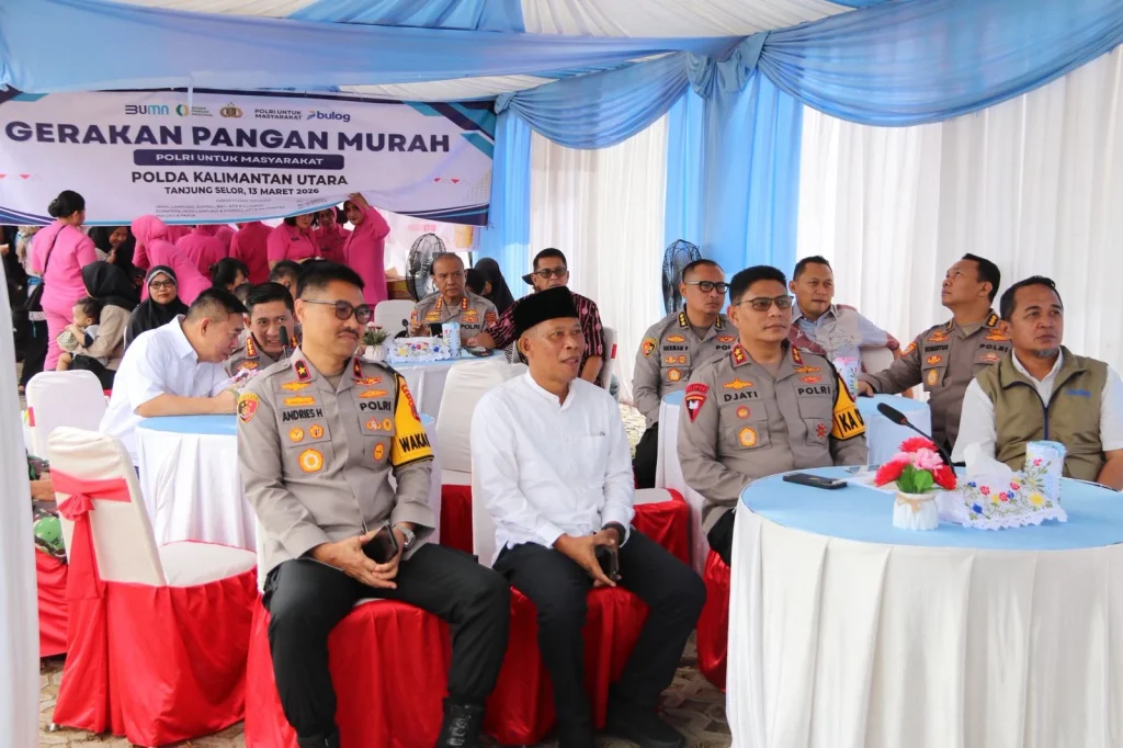 TANJUNG SELOR – Polda Kalimantan Utara melaksanakan Gerakan Pasar Murah dalam rangka mendukung program Gerakan Pangan Murah Polri di Halaman Parkir Tugu Cinta Damai, Tanjung Selor, Kabupaten Bulungan, Jumat (13/3/2026).