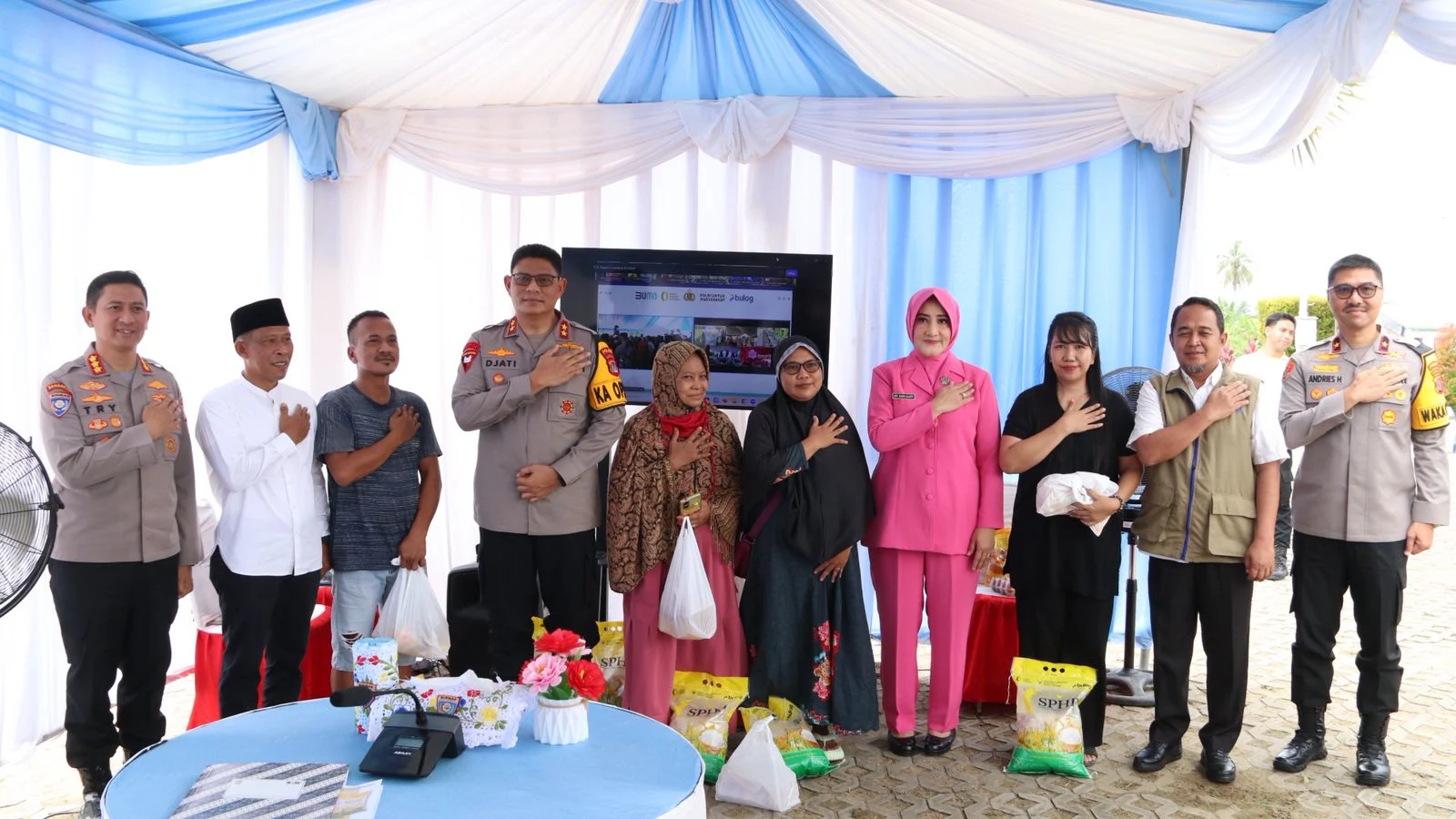 Kegiatan ini dihadiri Kapolda Kaltara Irjen Pol. Djati Wiyoto Abadhy, S.I.K., Ibu Ketua Bhayangkari Daerah Kalimantan Utara Ny. Sari Djati Wiyoto Abadhy. Wakapolda Kaltara Brigjen Pol. Andries Hermanto, S.I.K., S.H., M.Si., Bupati Bulungan Syarwani, S.Pd., M.Si., Kabulog Cabang Bulungan Oktavianur, serta pejabat utama Polda Kaltara, personel, dan masyarakat Tanjung Selor.