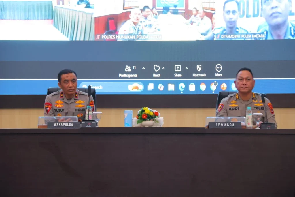 Kegiatan ini dihadiri oleh Wakapolda Kaltara Brigjen Pol. Yusuf, S.I.K., M.Hum., Irwasda Polda Kaltara Kombes Pol. Audy Alfrits Herman Manus, S.I.K., M.Si., C.Fr.A., para Pejabat Utama Polda Kaltara serta diikuti secara virtual oleh seluruh Kapolres/Ta jajaran Polda Kaltara.