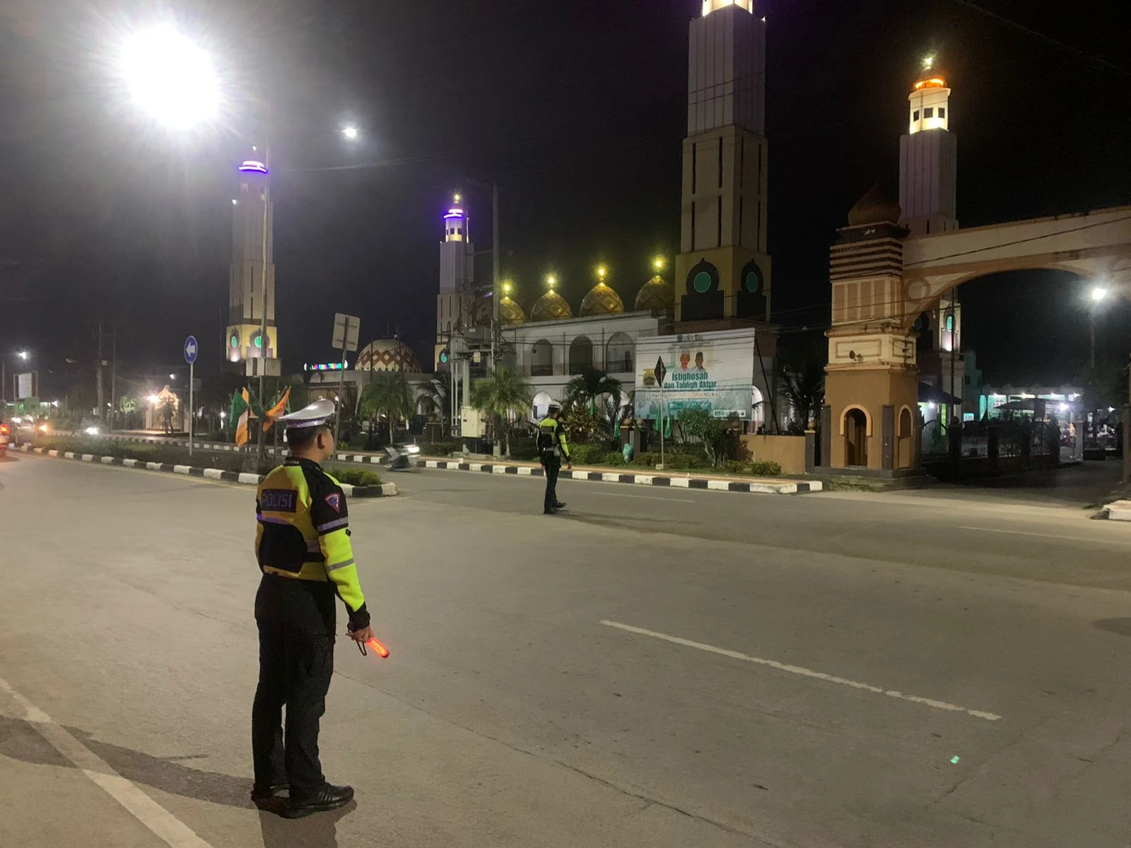 Sejak awal kegiatan, personel Satlantas disiagakan di sekitar area masjid dan ruas jalan utama untuk mengatur arus lalu lintas serta memberikan rasa aman kepada jamaah yang datang dari berbagai wilayah. Kehadiran polisi di lapangan menjadi bagian dari upaya menciptakan suasana ibadah yang tertib, nyaman, dan khusyuk.